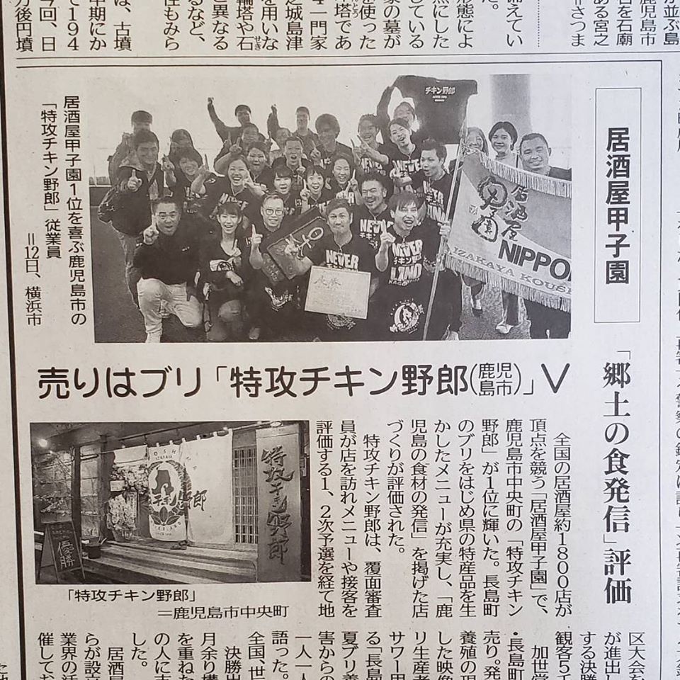 南日本新聞社さんに「居酒屋甲子園 優勝」についての記事掲載さ